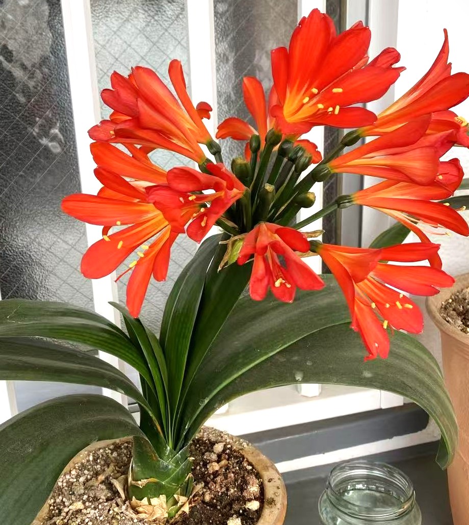 - 花の特徴:鮮やかな橙赤色のラッパ状の花が10〜20個ほど房状に咲きます。